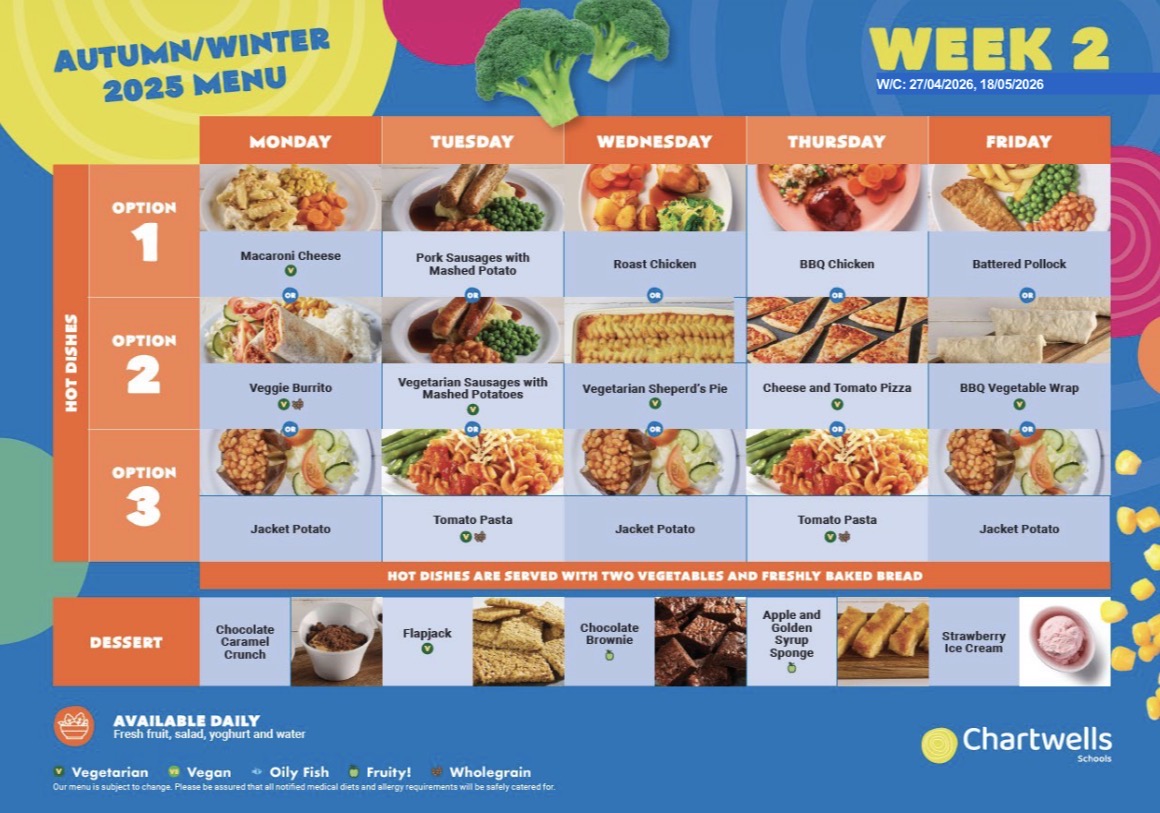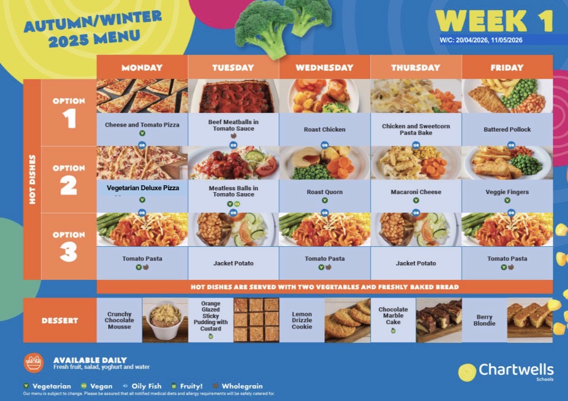 From Monday 5th January 2026, school dinners will cost £2.75. |