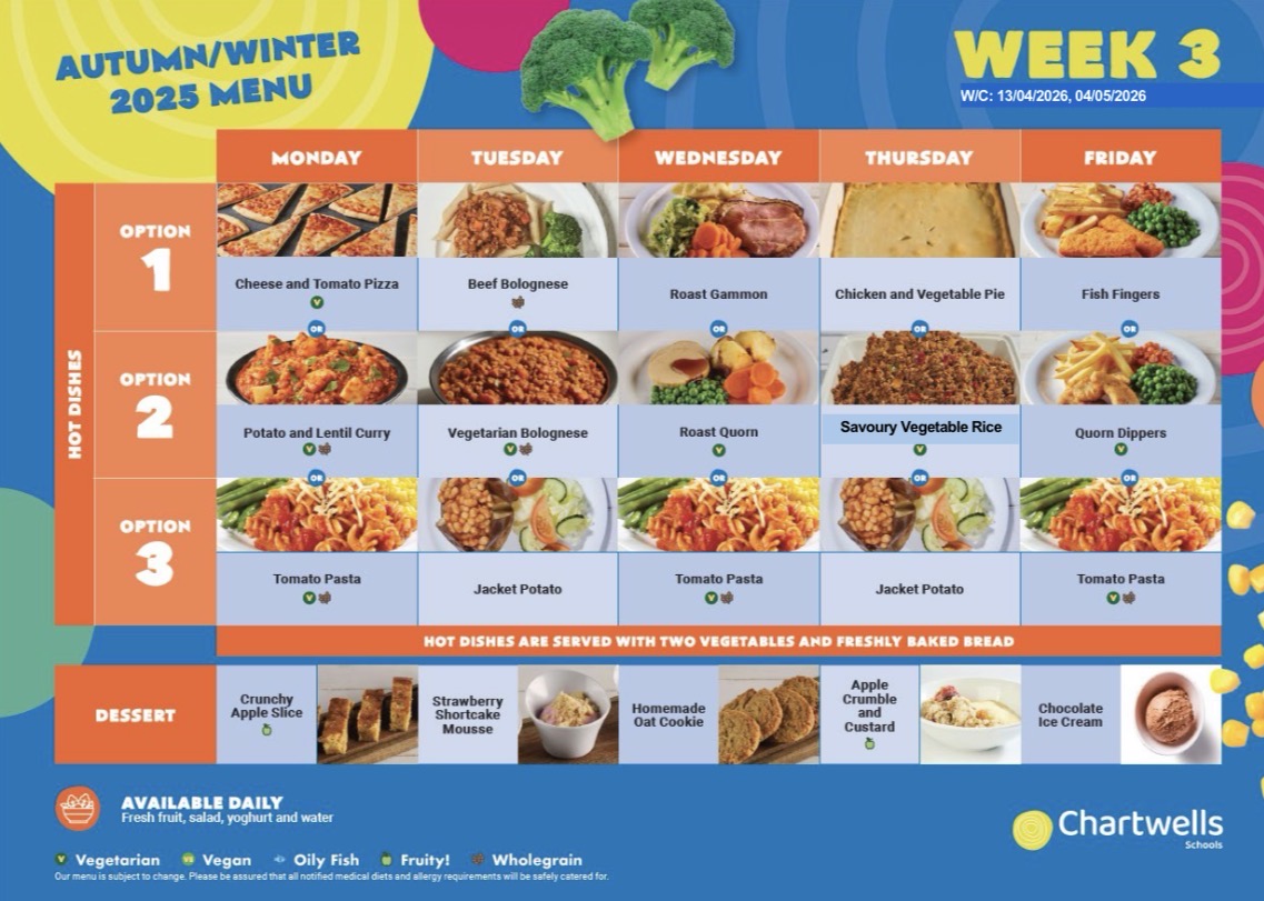 If your child requires a special diet due to medical reasons, please register by clicking here and completing the ‘Chartwells Medical Diet Request Form’.
